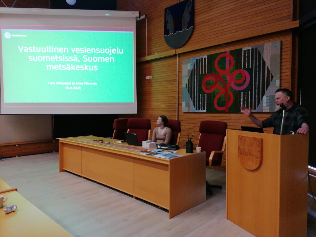 Pohjanmaan vesi ja ympäristö ry (PVY) järjesti yhdessä Suomen metsäkeskuksen kanssa tupaillan metsänomistajille Evijärven kunnantalolla 15.4.2026. Tupailta oli osa PVY:n Ähtävänjoen kalat ja helmet -hanketta sekä Metsäkeskuksen RAPSU ja TUKKA-hankkeita. Paikanpäällä oli yhteensä 18 henkilöä, jonka lisäksi etäyhteyden kautta osallistui kaksi henkilöä.