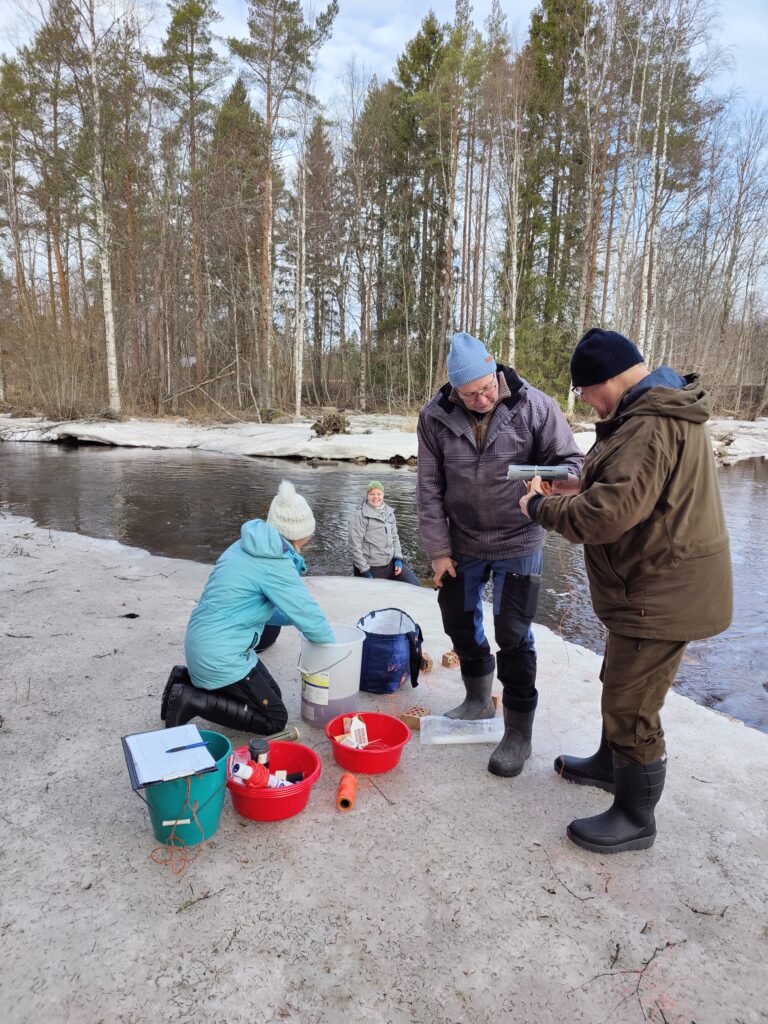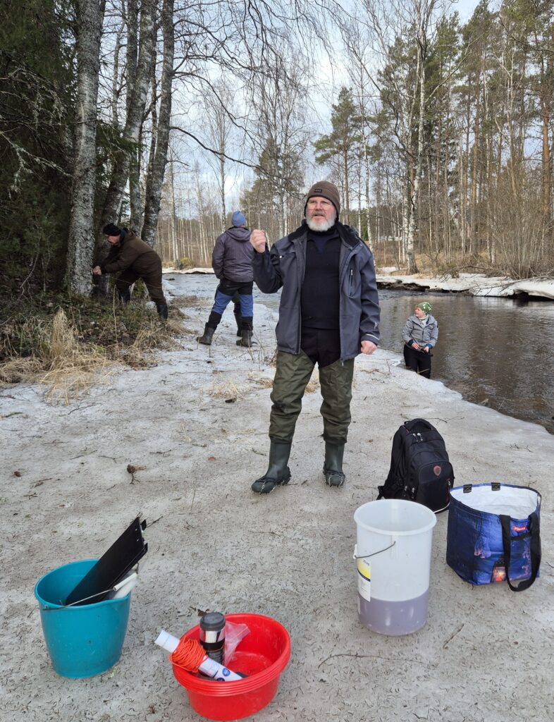 Talkoarbetarna vid Esse ån 20.3.2026. Foto Heli Jutila.